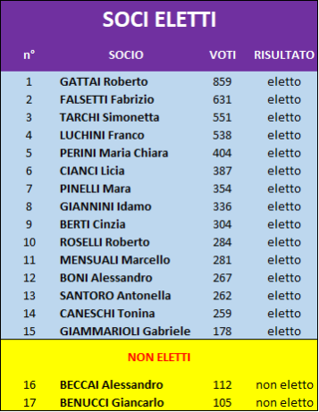 Si passa a parlare, quindi, dell’esito delle ultime votazioni per il rinnovo del Consiglio della Associazione.
